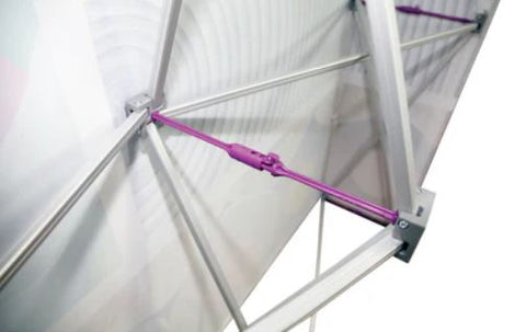 - Lightweight 8ft wide (3 quad x 3 quad) straight anodized silver frame