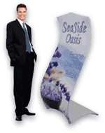 The 5′ Contour Arc Banner Display Kit is a unique, full floor, display. The unit, which fully collapses to fit in a small carry bag, uses a shock corded and push button connection system for quick and easy set-up. Made from lightweight aluminum 1.25″ tubing and brilliant dye-sublimated fabric graphics on poly-stretch material.