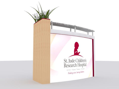 Smart trade show design incorporates practical Counters and Pedestals. But "practical" doesn't mean dull and boring. Our trade show designs are stylish and indispensable additions to any display, ranging from simple and modular to funky and fully assembled. Most have locking storage.