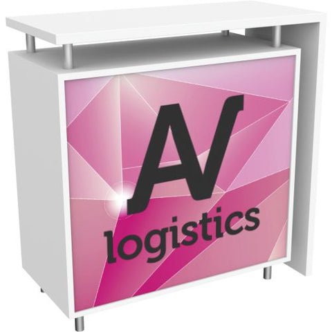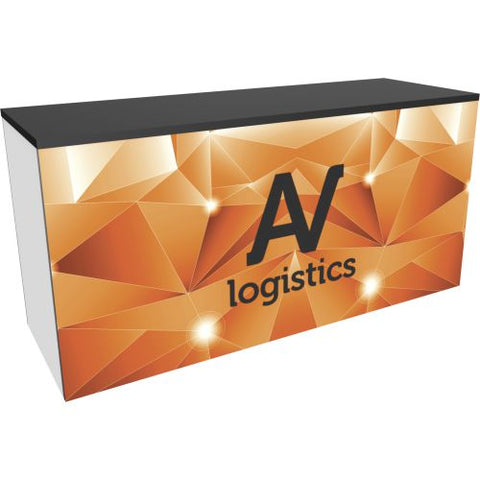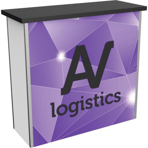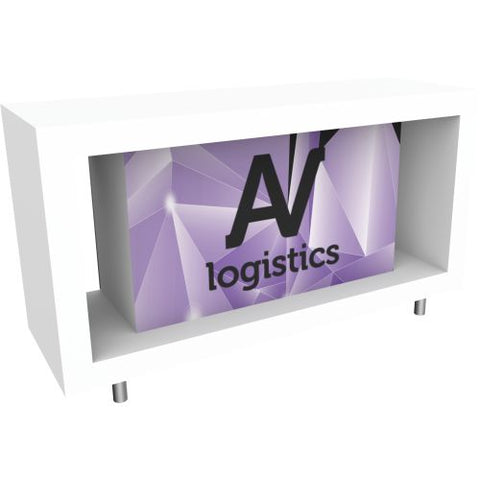 Hybrid Pro Modular Counter 09 - Hybrid Pro™ Modular Counter 09 is a stylish counter solution for any exhibit, featuring accessible storage with locking doors, white laminate exterior with center backlit vinyl graphic. Add the finishing touch to any exhibit or environment with the Hybrid Pro Modular Counter 09.