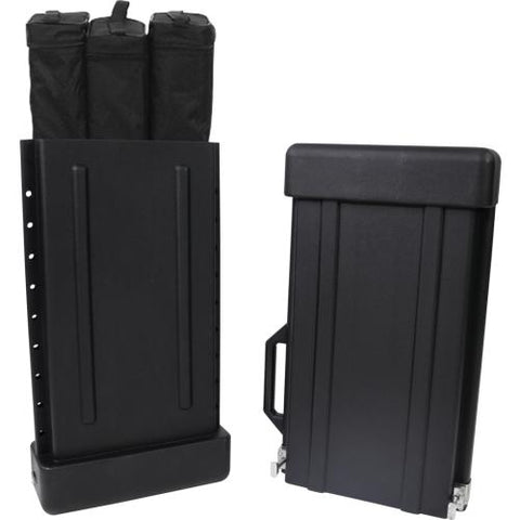 Its variable graphic height varies from 61.5" to 87" with a hybrid bungee/ telescoping pole with toolless quick rail, an anodized silver base with black end caps, and a snap top graphic rail.