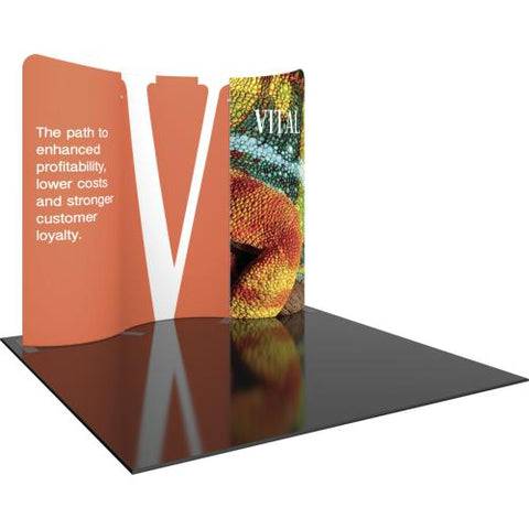 Modulate 30ft Kit 01 consists of seven curved banners. Kit 01 reconfigures into a 20ft wide display, OR into two 10ft wide displays. Maximize your value in this versatile, reconfigurable system.