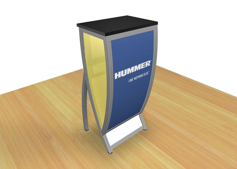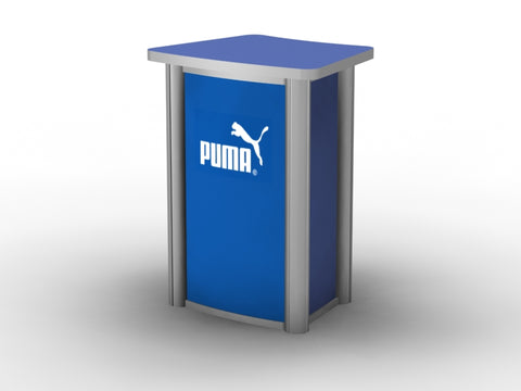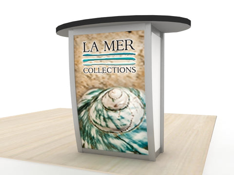 Smart trade show design incorporates practical Counters and Pedestals. But "practical" doesn't mean dull and boring. Our trade show designs are stylish and indispensable additions to any display, ranging from simple and modular to funky and fully assembled. Most have locking storage.